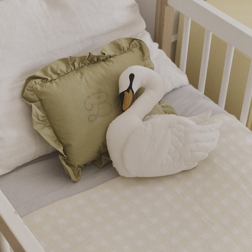 La combinazione di colori avorio naturale fa sì che il cuscino per bambini si inserisca armoniosamente in qualsiasi interno della stanza dei bambini.