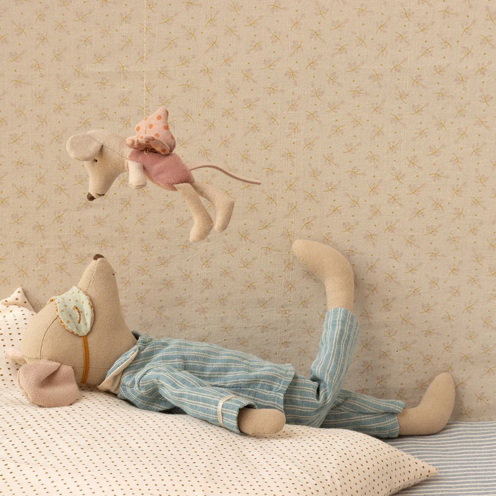 Con le sue simpatiche ali e il delicato cordoncino, questo topo non solo può volare nell'immaginazione di un bambino, ma anche decorare una stanza, appeso ovunque.