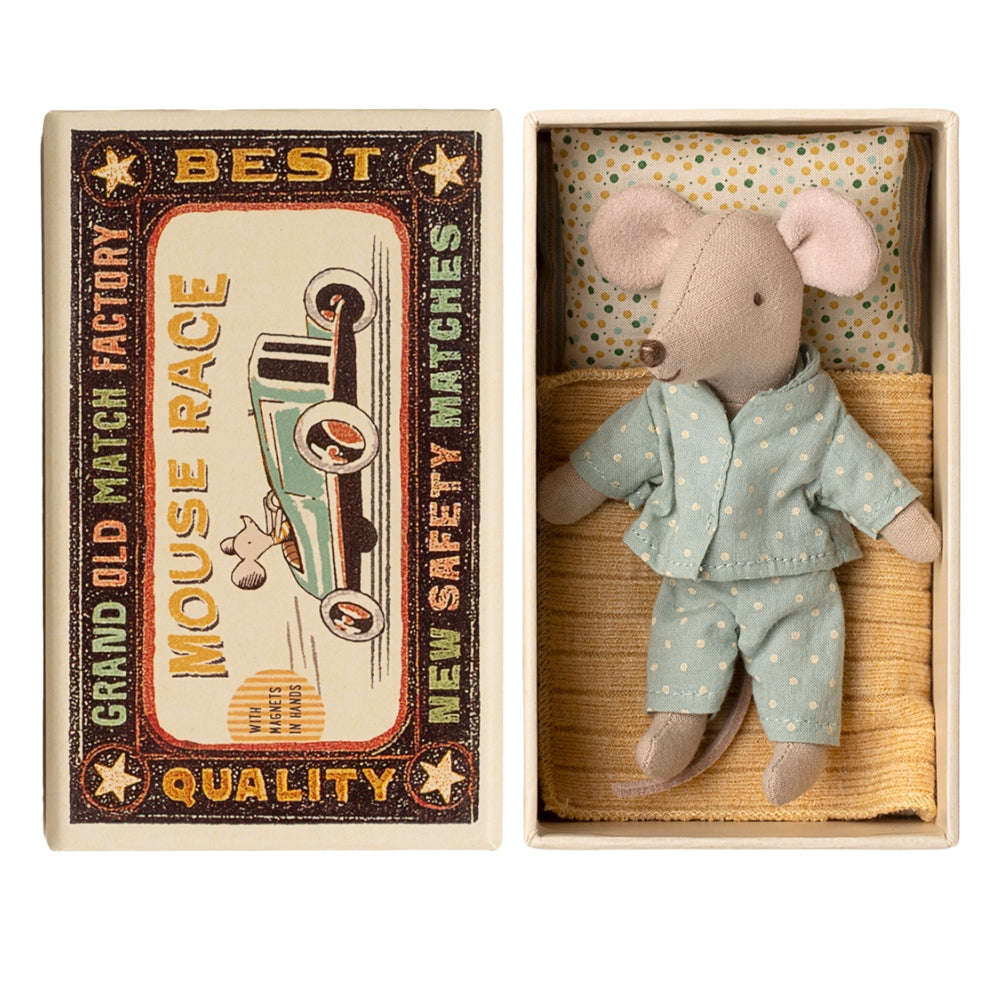 Il topolino di Maileg è un adorabile giocattolo che da anni fa la gioia di bambini e adulti. Disegnato con attenzione a ogni dettaglio, vestito di morbidi tessuti e avvolto in una soffice lettiera in una colorata scatola di fiammiferi, diventa un fedele compagno di giochi e di sonno.