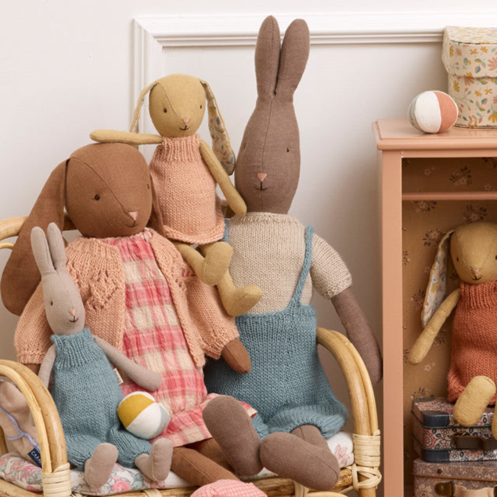 Il coniglietto Maileg in salopette è un classico, morbido peluche realizzato in tessuti naturali che delizia e dà un senso di calore fin dal primo tocco.