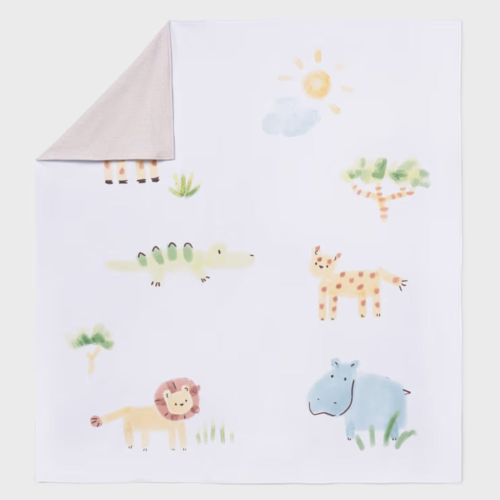 La coperta di cotone Mayoral con un'adorabile stampa a motivi safari è un'aggiunta delicata al corredino del vostro bambino, adatta fin dai primi giorni di vita.
