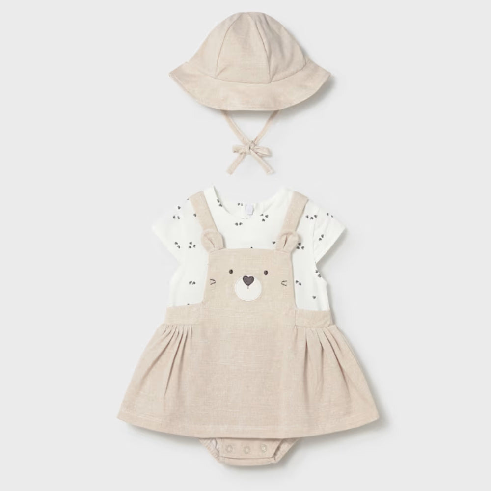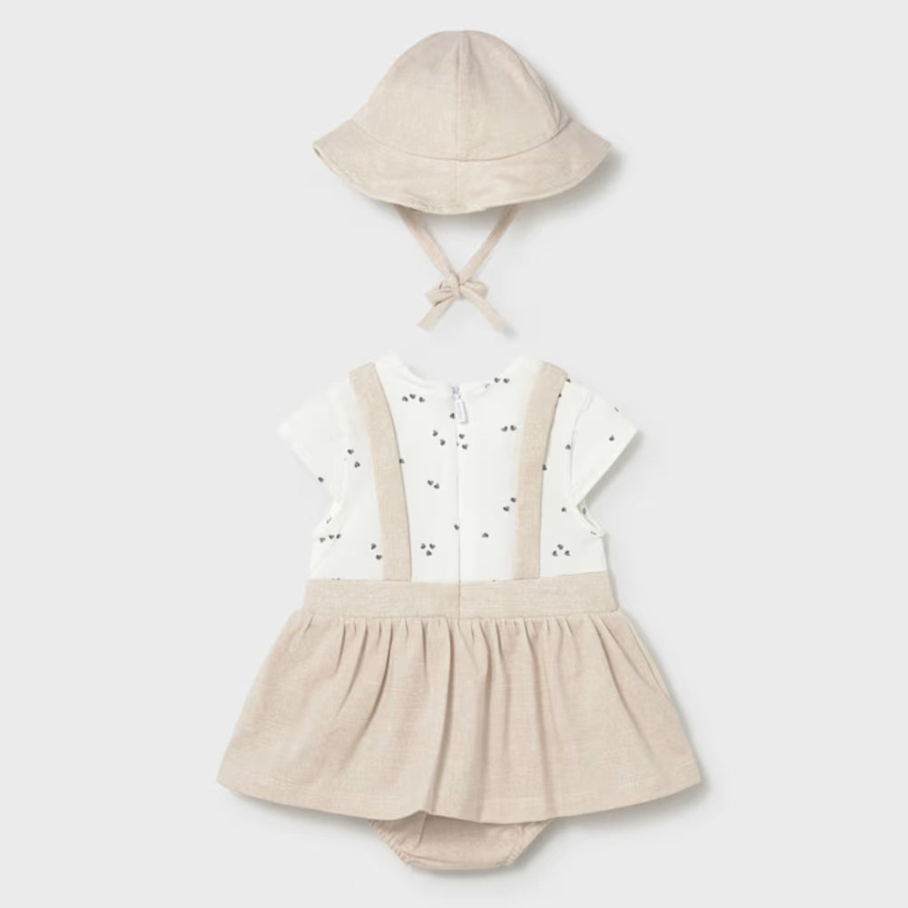Mayoral Set 2 pezzi per bambina, vestito con salopette e berretto Wheat