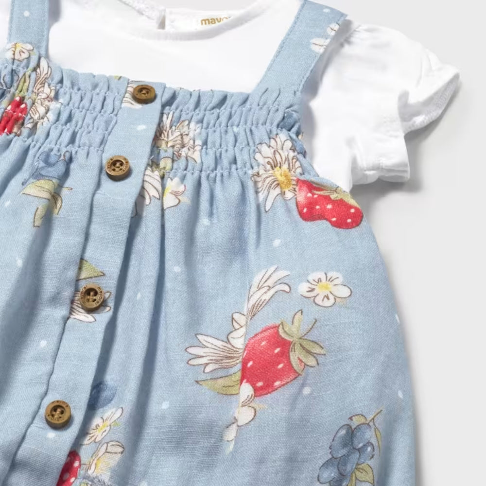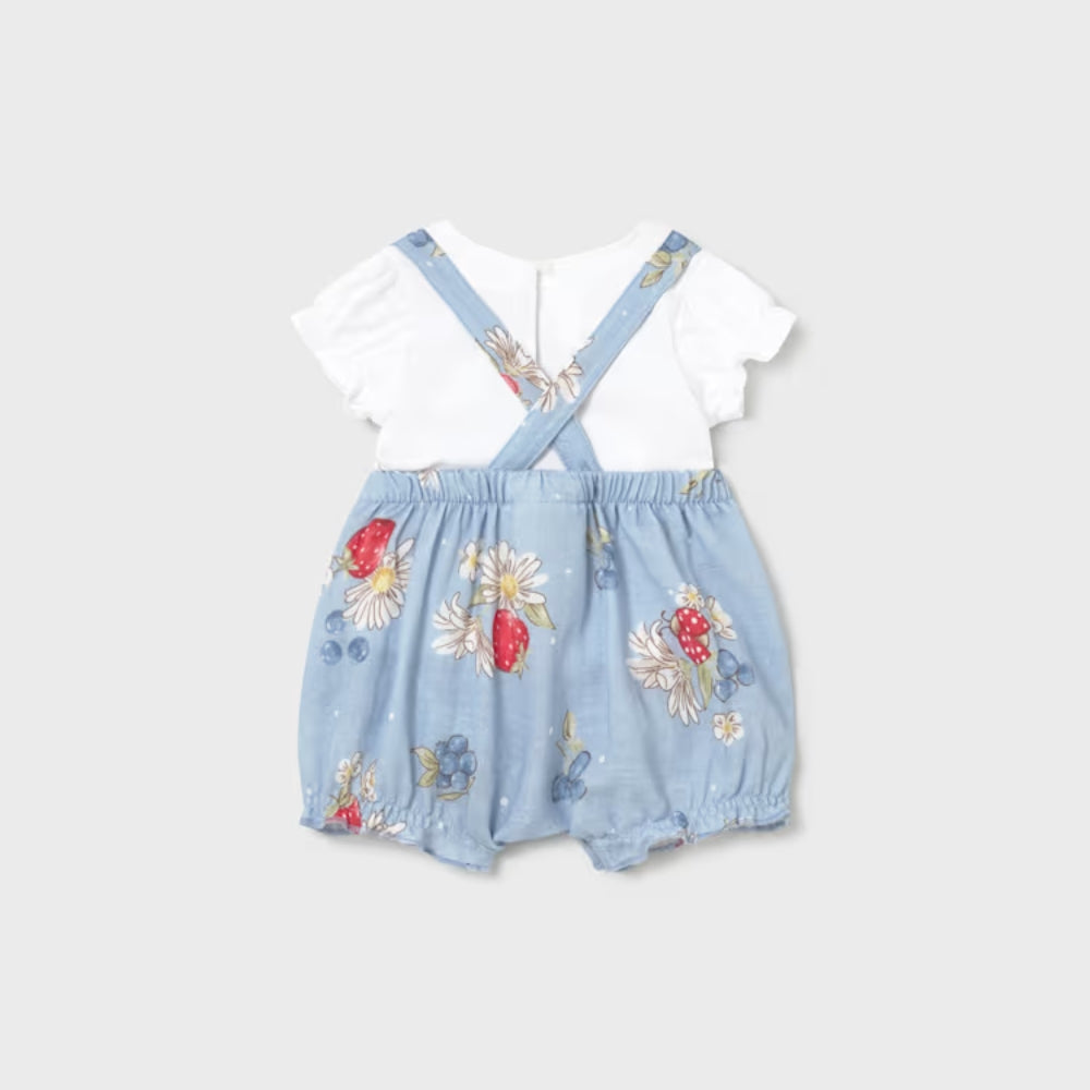Il set è composto da salopette e maglietta, che creano uno stile coeso preparato da Mayoral pensando al comfort del bambino.