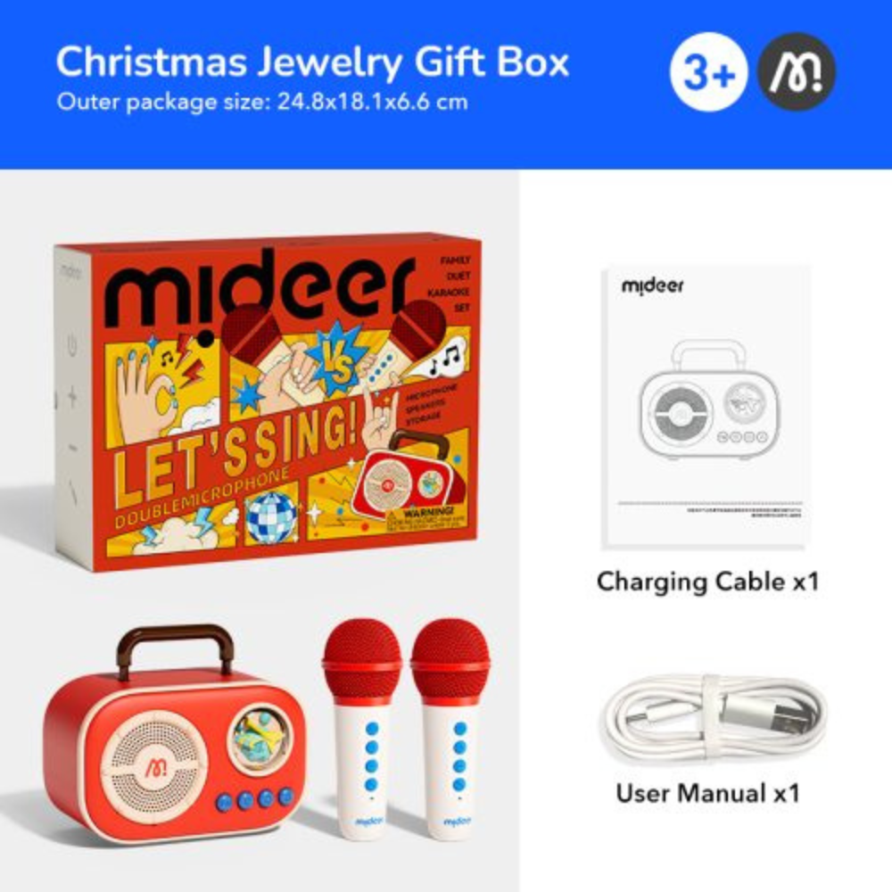 Se il vostro bambino sogna il palcoscenico, Mideer gli offre uno spazio sicuro e amichevole per muovere i primi passi, e il doppio set karaoke fa sì che ogni esibizione suoni e sembri "seria".
