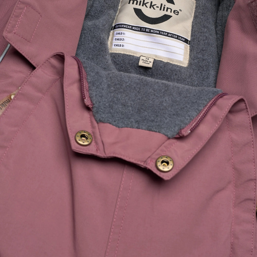 La tuta invernale per bambini della linea Mikk è realizzata in nylon resistente con rivestimento ecologico al fluoro BIONIC-FINISH® ECO e un'imbottitura in poliestere morbida e calda.