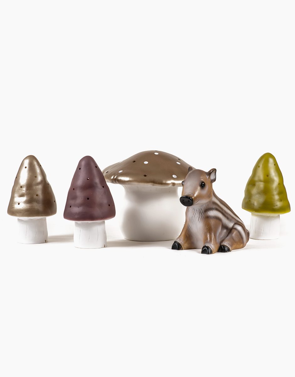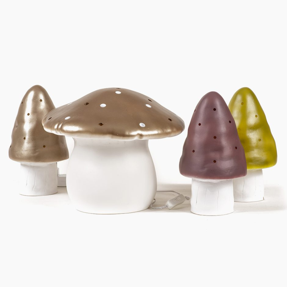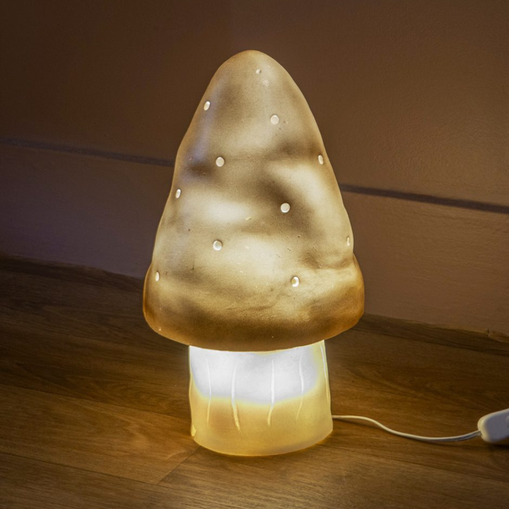 La lampada da comodino a forma di fungo di Minikane è un accento affascinante per aggiungere intimità all'angolo del bambino.