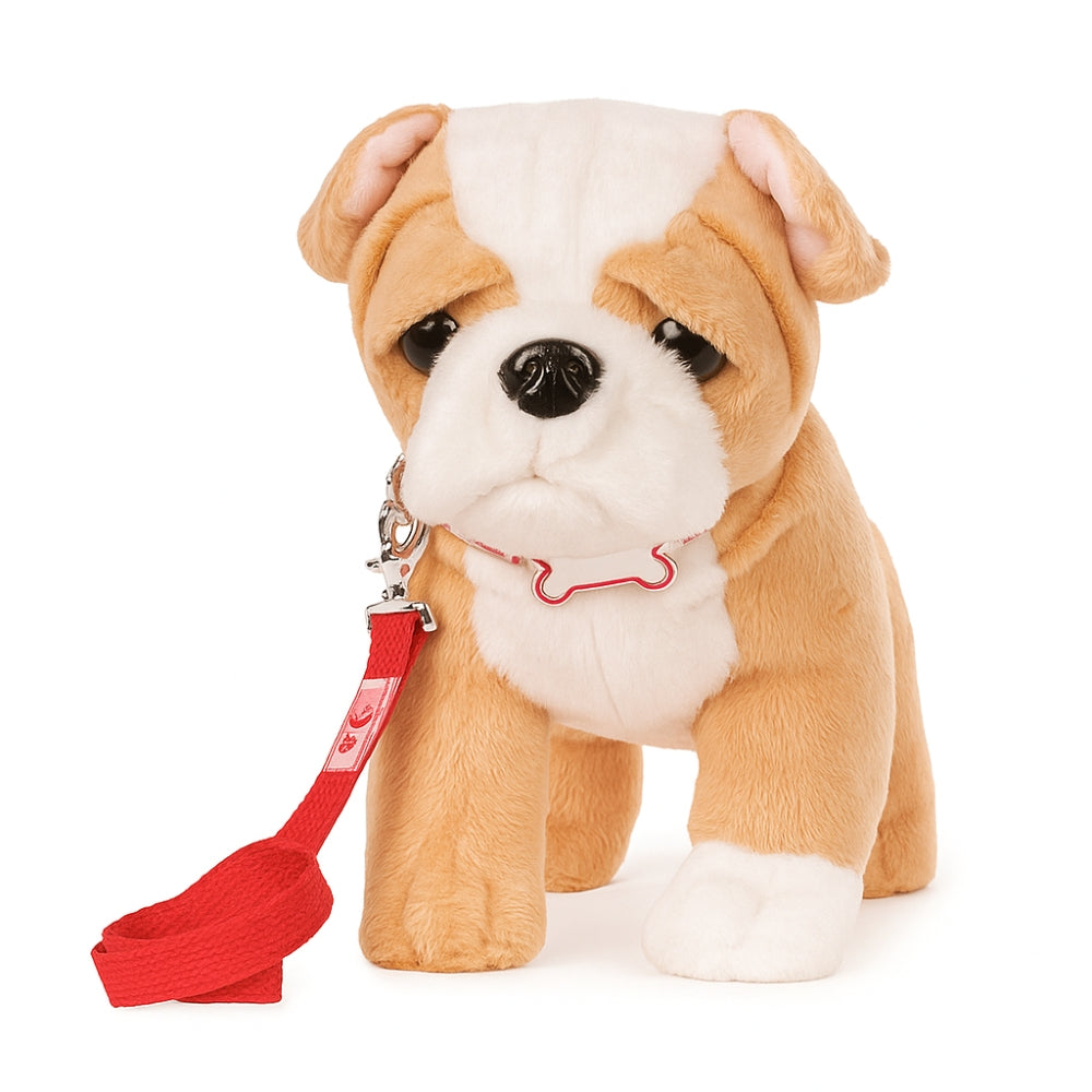 Il cucciolo di peluche di Our Generation Bulldog è un adorabile cucciolo di peluche con collare e guinzaglio, pronto per passeggiate e cure quotidiane.