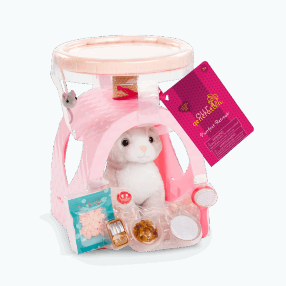 Il set Our Generation Purrfect Retreat è un sogno che diventa realtà per i piccoli guardiani di animali: l'adorabile gattino con casa invita a creare le proprie storie e le proprie cure.