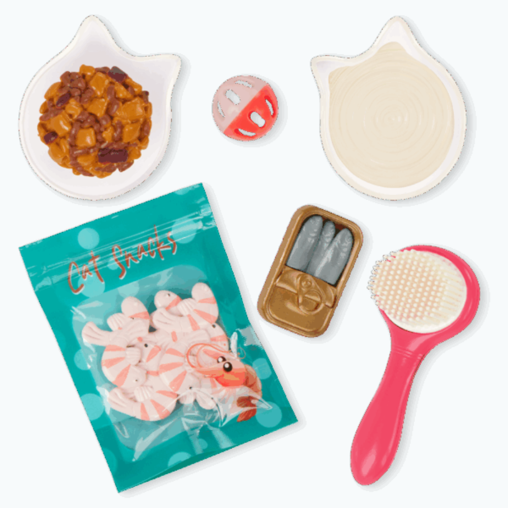 Sono inclusi tutti gli accessori per la pappa e la toelettatura, in modo che il gatto di casa abbia sempre il pancino pieno e il pelo lucido.