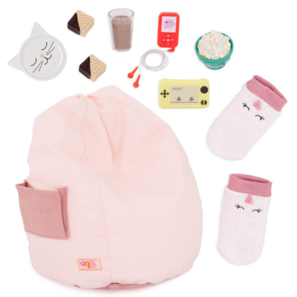 La borsa-seduta è perfetta per leggere in tranquillità, ascoltare musica o rilassarsi dopo un gioco intenso, proprio come in un salotto "adulto". Si adatta alle bambole Our Generation con un'altezza di 46 cm.