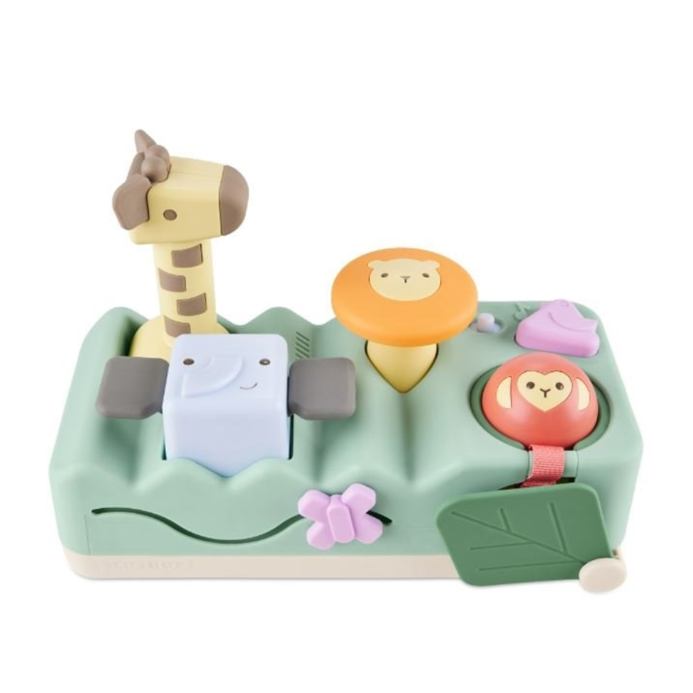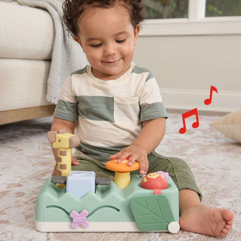 Il giocattolo musica e battito di Skip Hop è un giocattolo unico 2 in 1 che combina il divertimento del martellare con un'avventura musicale ricca di luci colorate, suoni di animali ed elementi emozionanti da scoprire.