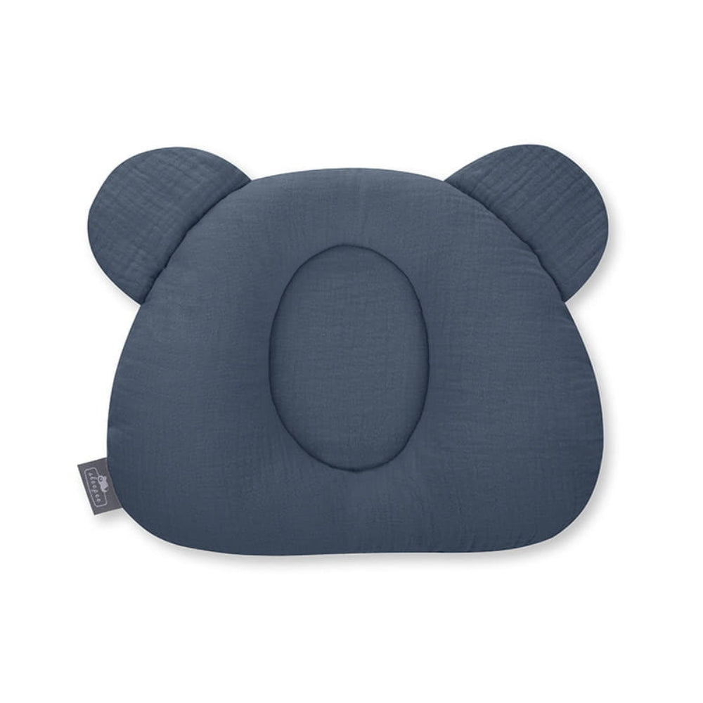 Il cuscino per neonati Sleepee è realizzato in morbida mussola di cotone e ha una forma che ricorda la testa di un orsetto.