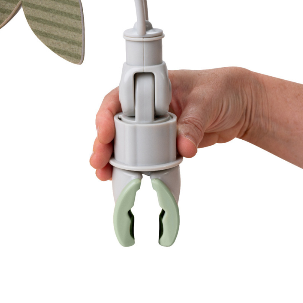 La fascia con ciondoli può essere facilmente agganciata grazie alla clip universale e il design flessibile consente di posizionare i giocattoli in modo che siano esattamente nel campo visivo del bambino.