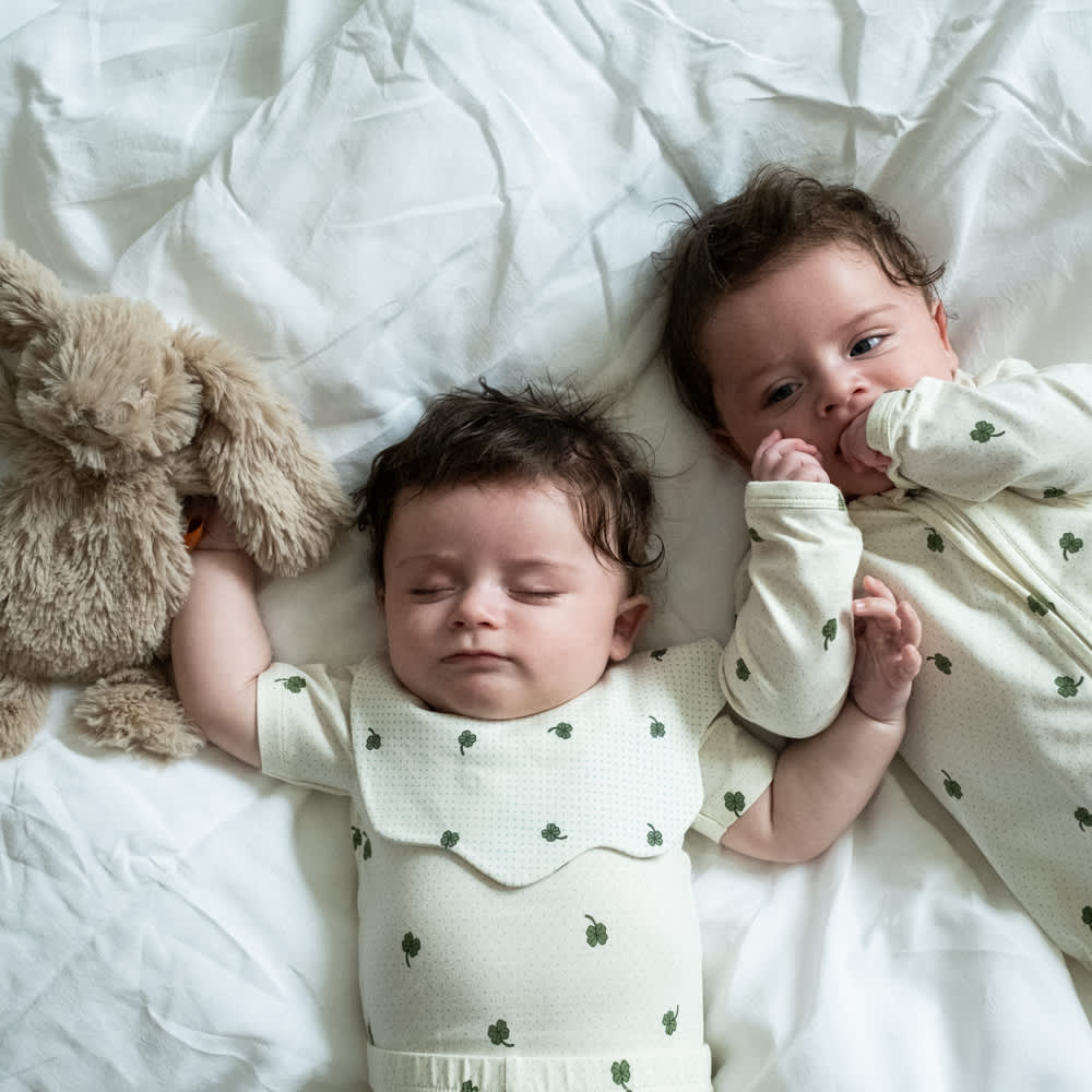 Il bavaglino è realizzato con una combinazione di cotone organico e modal, che lo rende eccezionalmente morbido e piacevole per la pelle delicata del bambino.