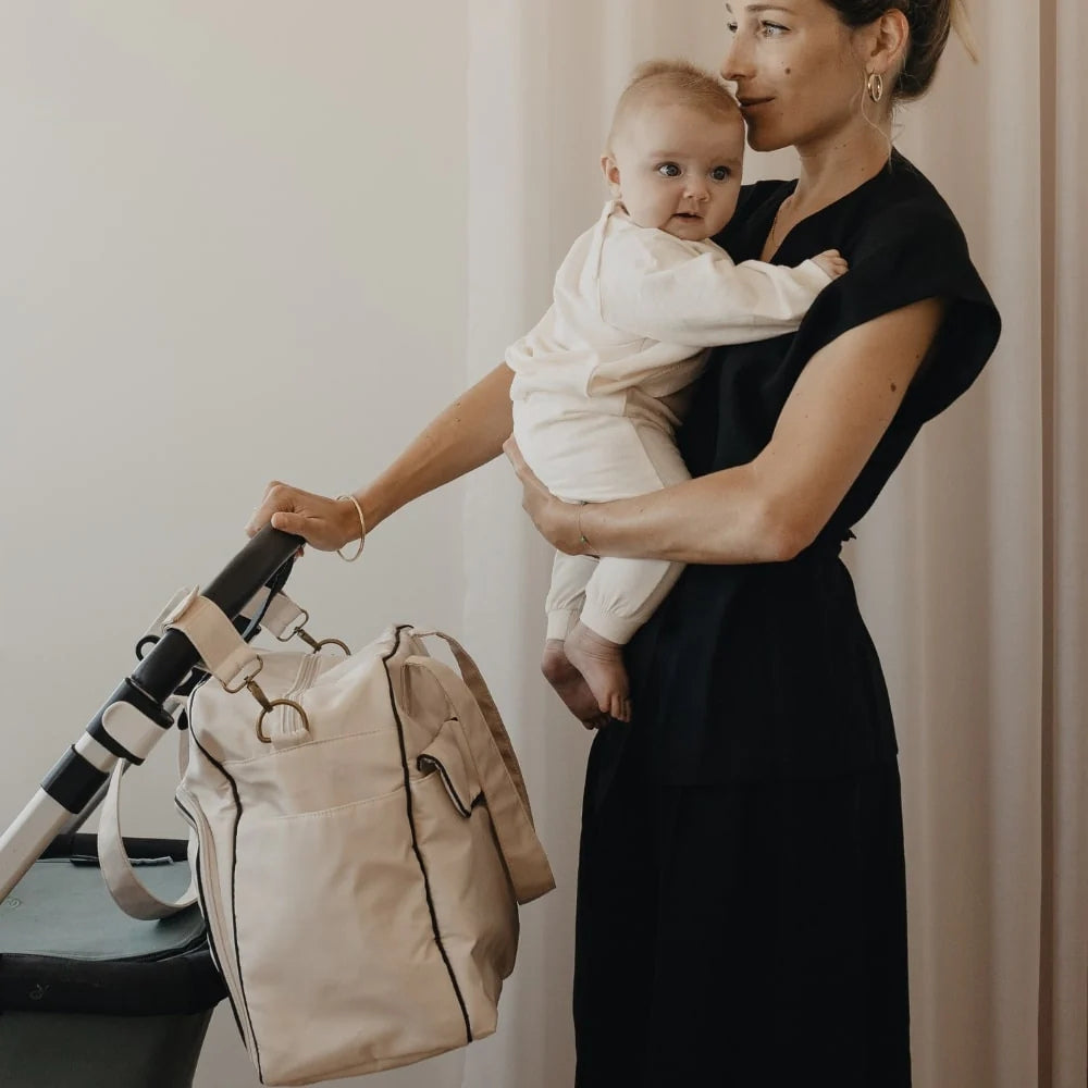 Creata in collaborazione con il marchio Élhée, la borsa mamma combina leggerezza, eleganza e soluzioni pratiche per facilitare la vita quotidiana con il bambino.