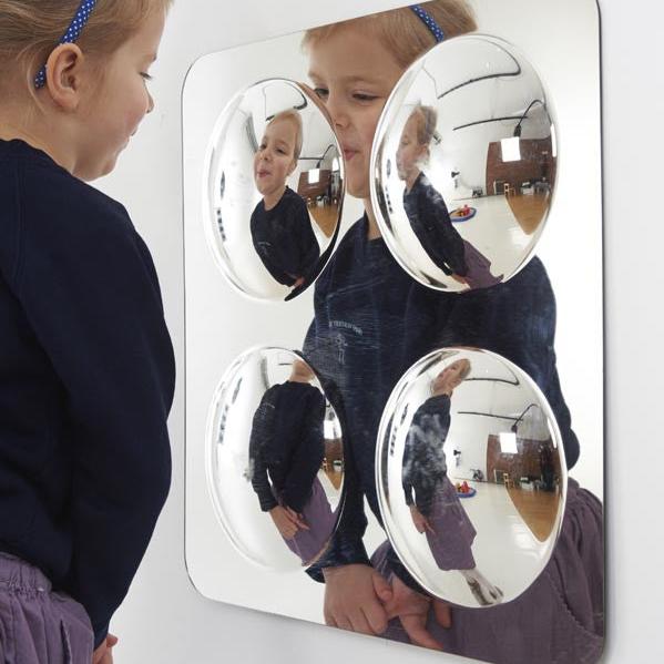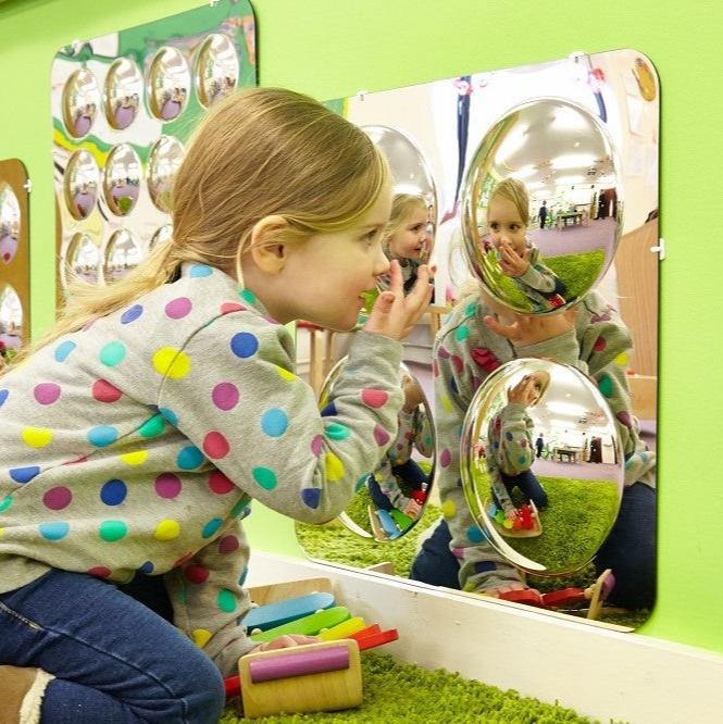 Le cupole a specchio convesse offrono una visione distorta, divertente e interessante che incoraggia i bambini a esplorare e scoprire una varietà di prospettive.