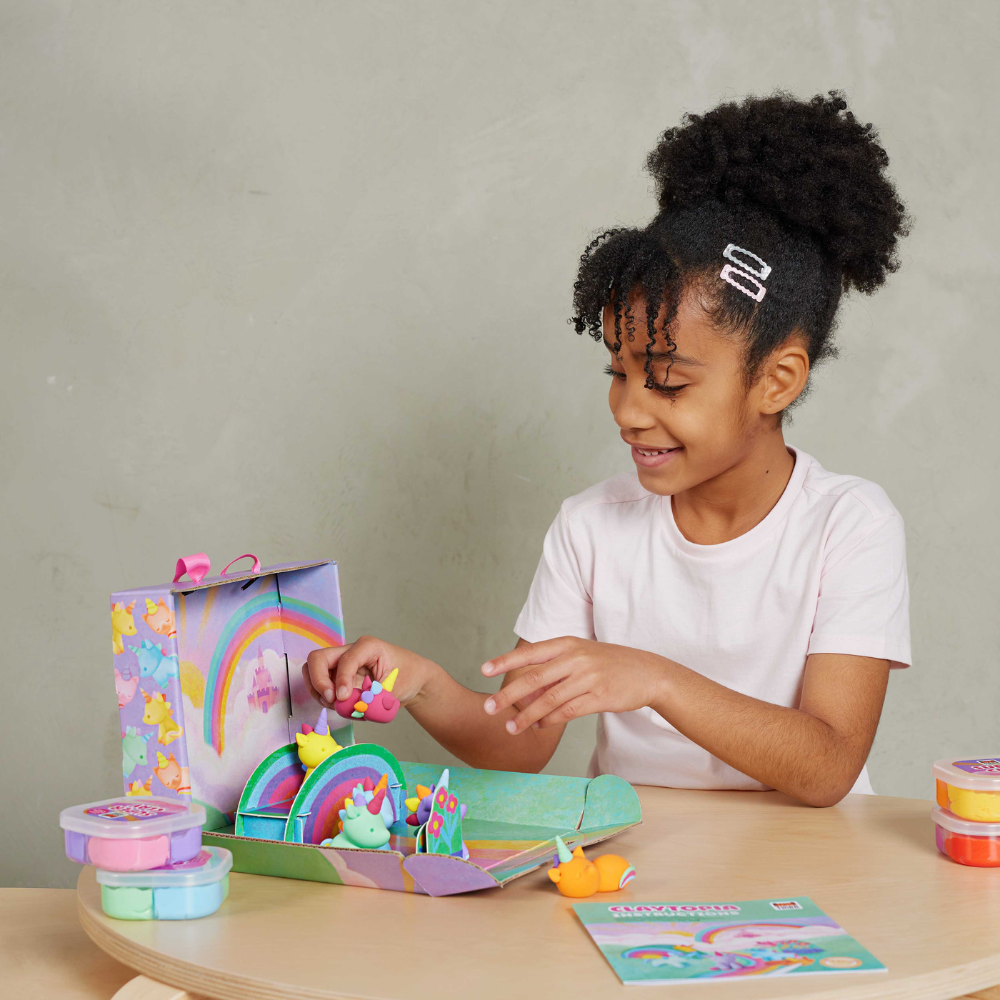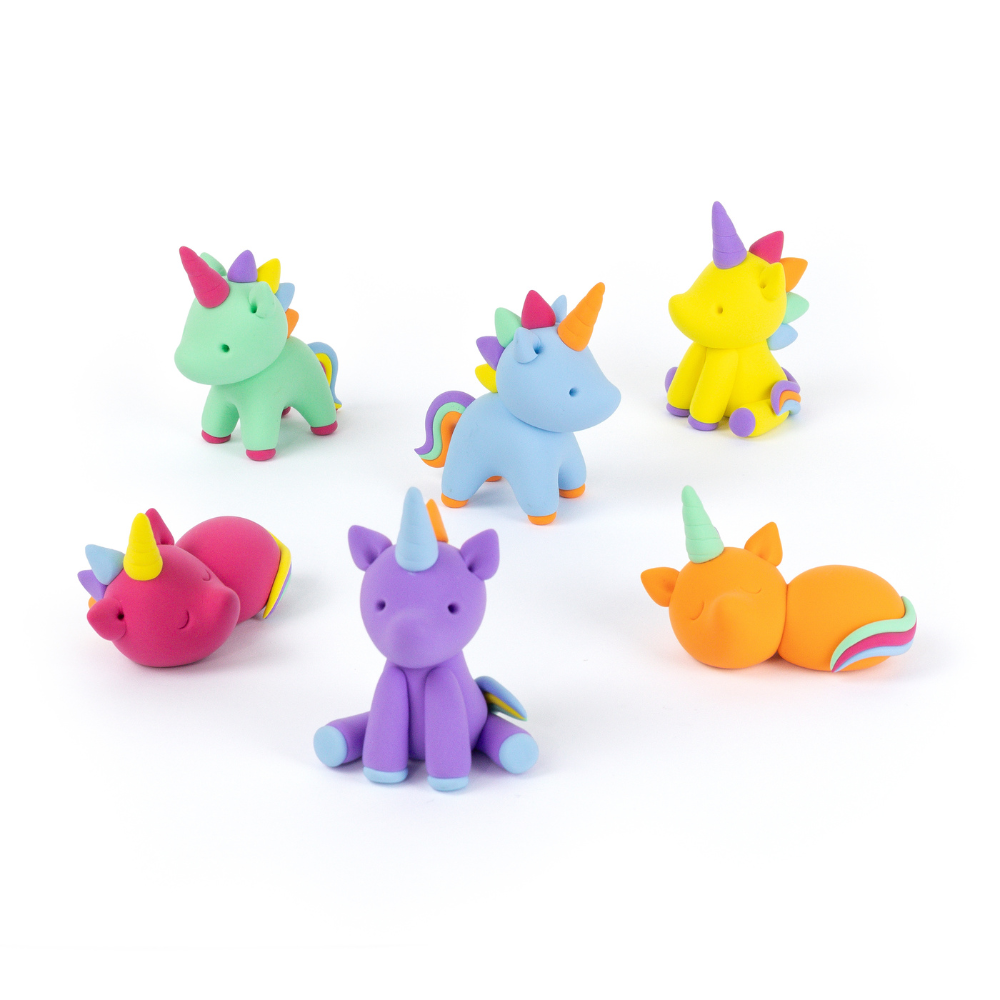 Creazione passo dopo passo - il kit include diversi composti colorati per modellare e semplici istruzioni per permettere al bambino di creare da solo degli adorabili unicorni.