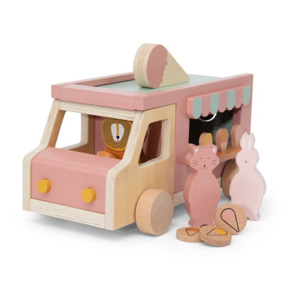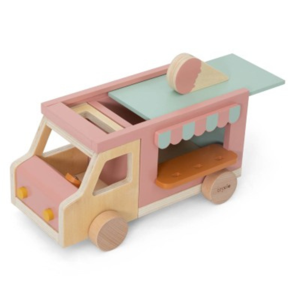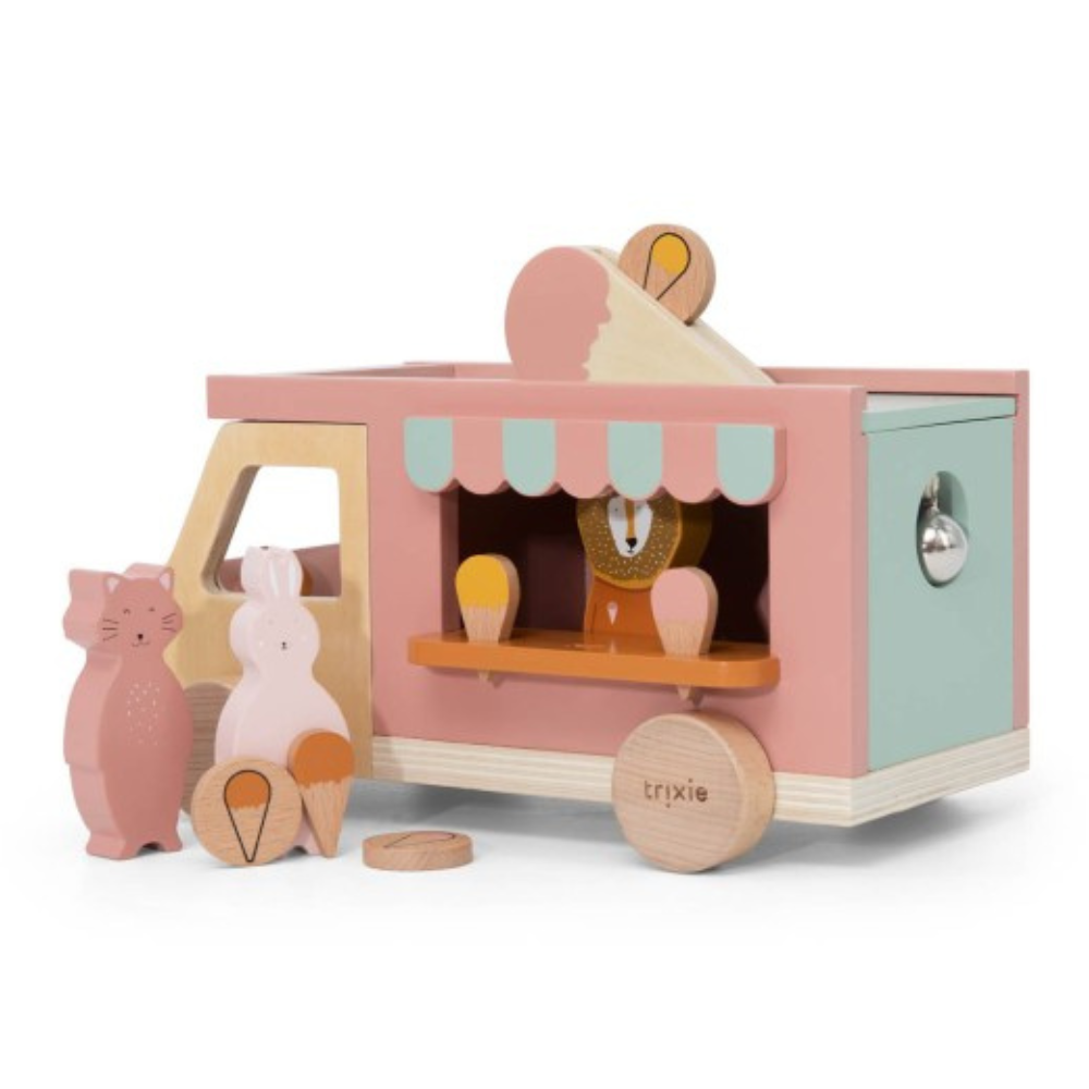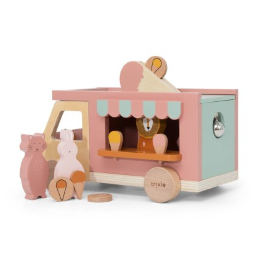 Il camioncino di legno è pronto per le avventure creative di tutti i giorni con il gelato. Questo giocattolo di Trixie si inserisce perfettamente nei teatri di casa, nei negozi e nelle scene con i vostri personaggi preferiti.